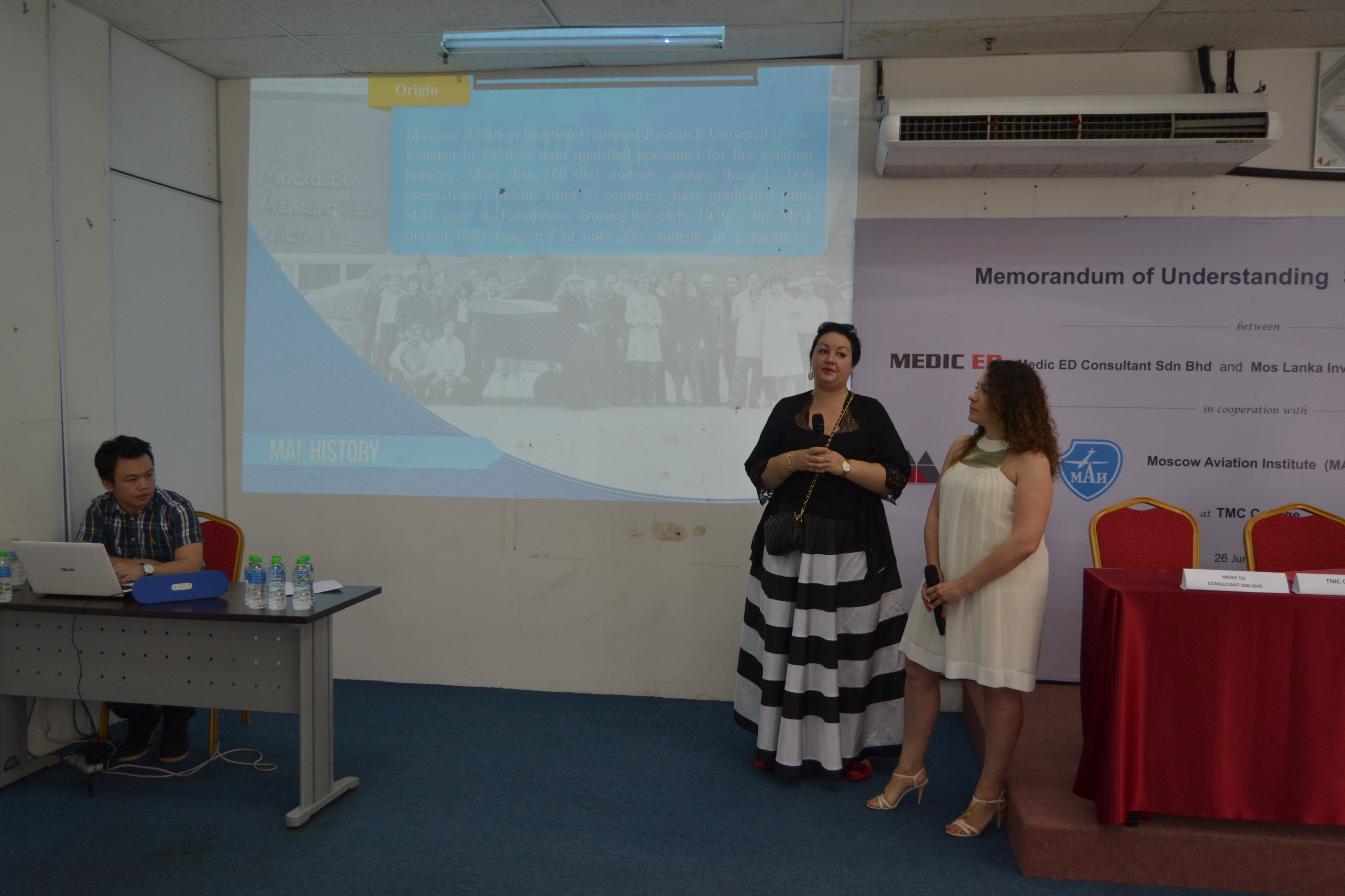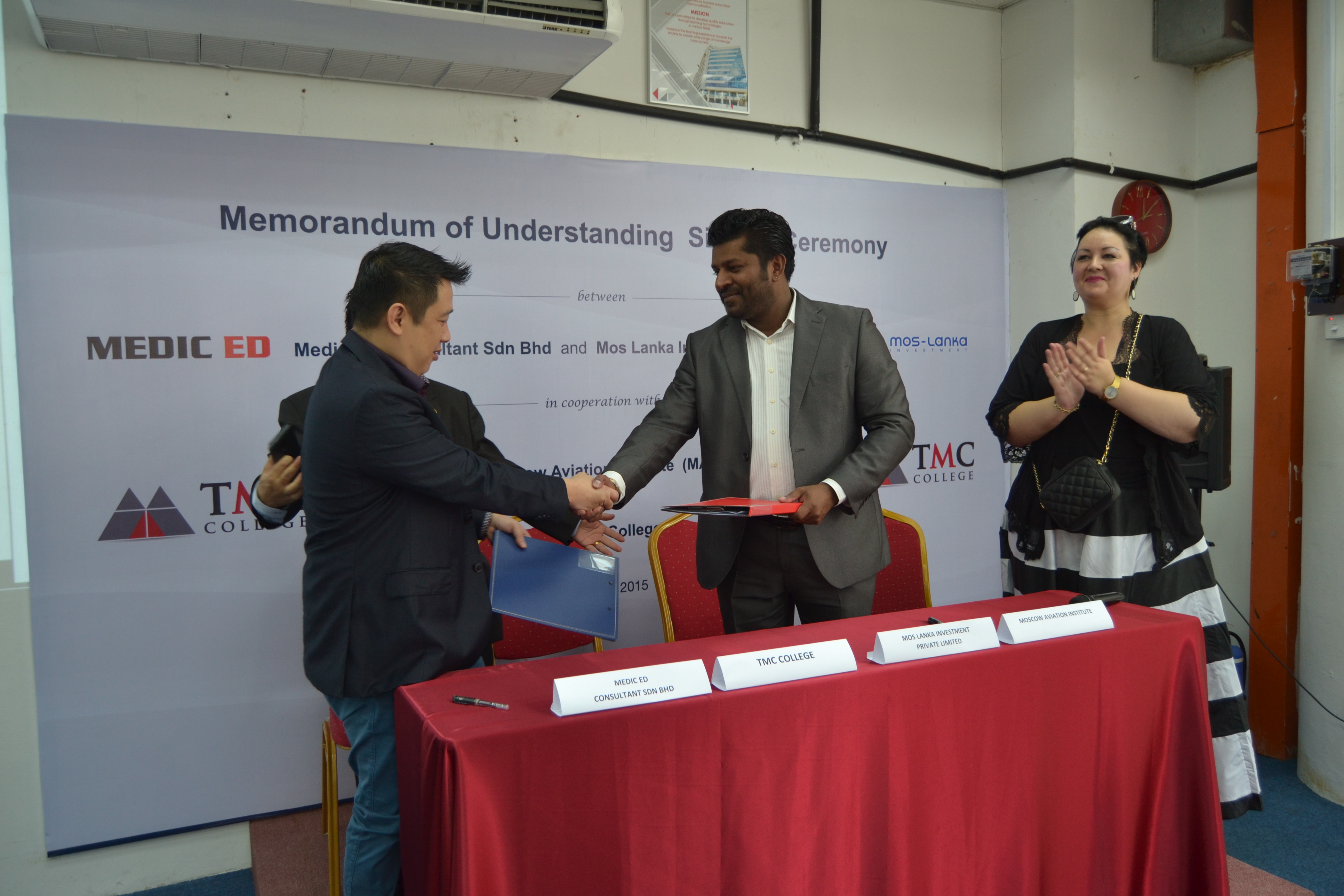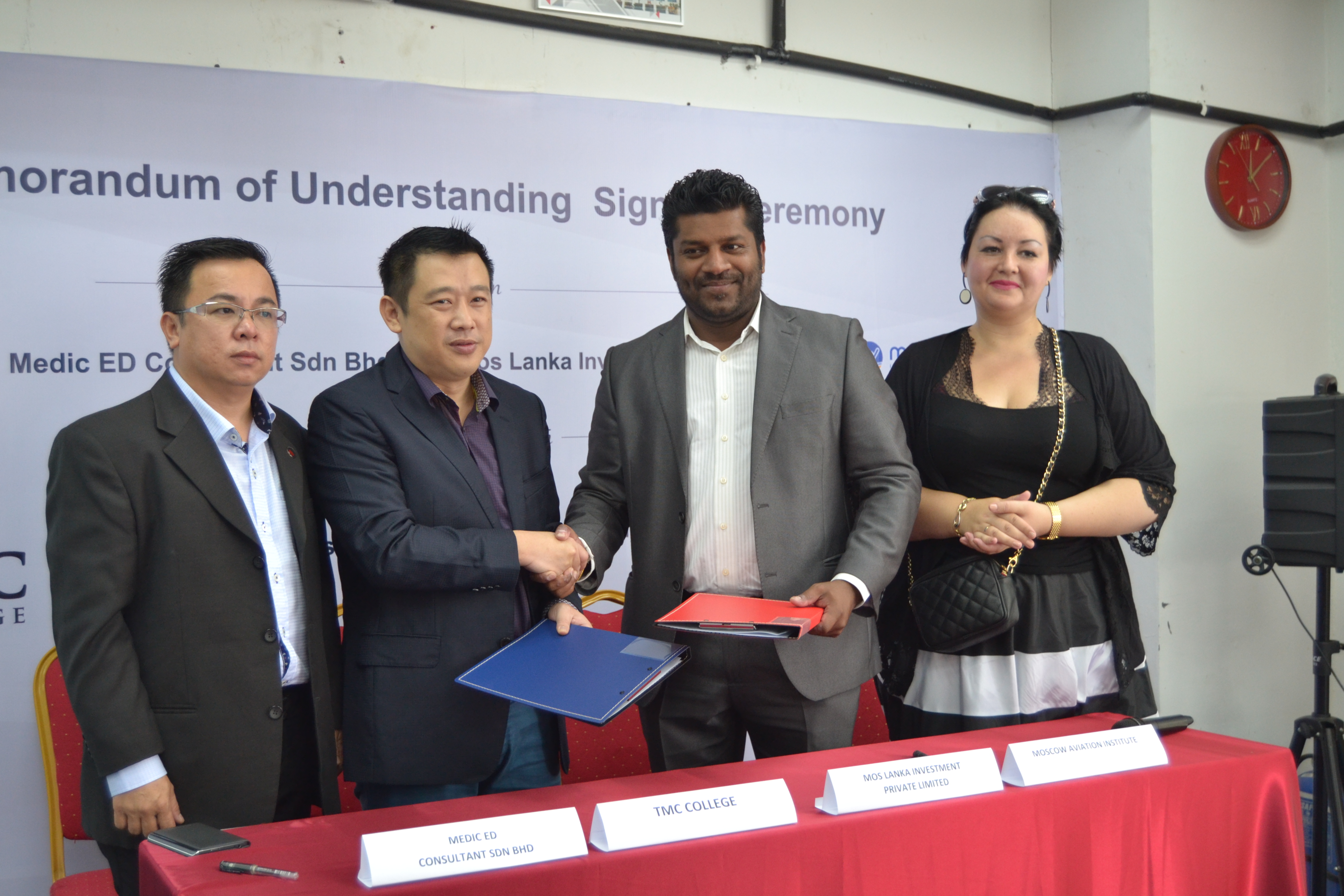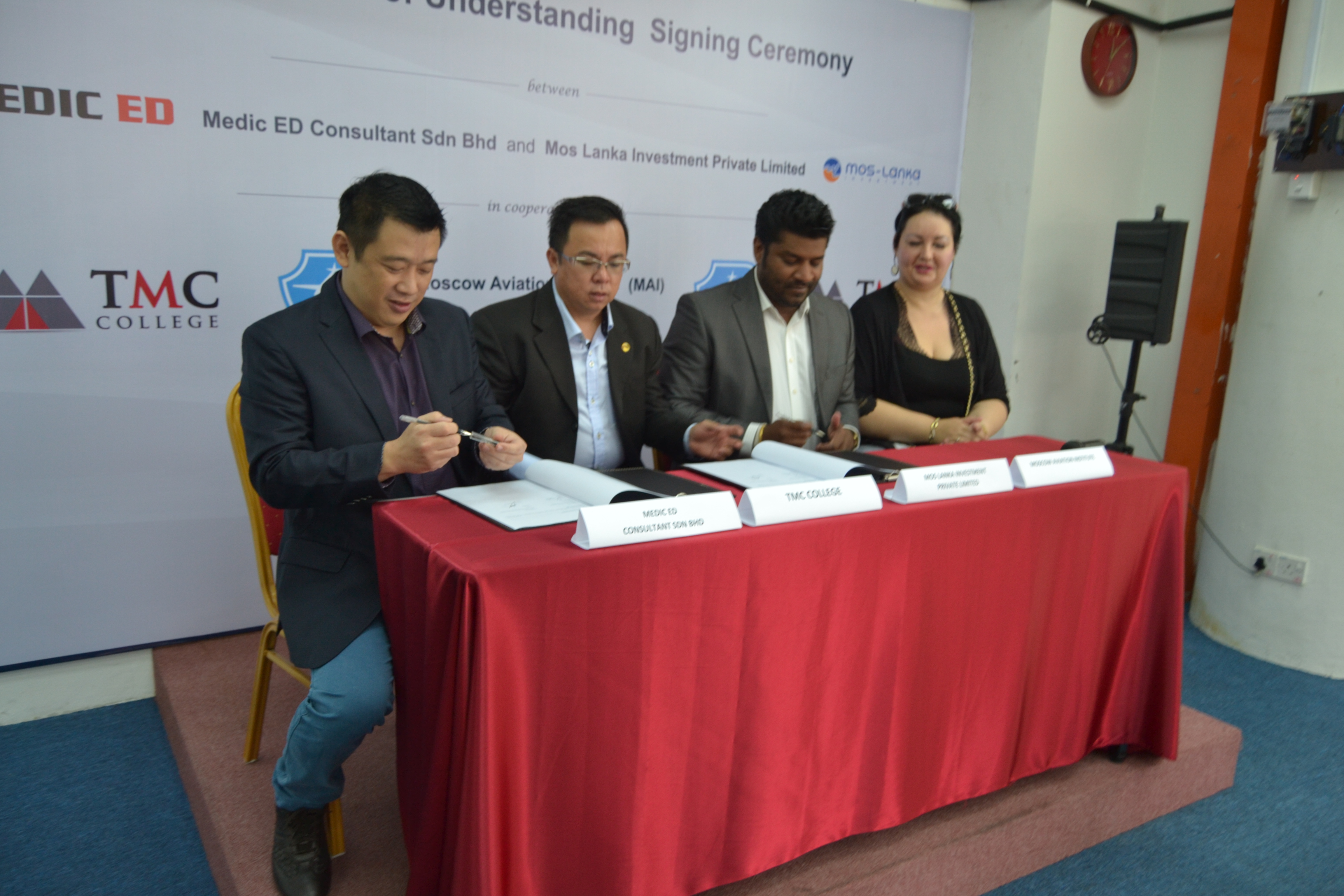 On June 26 ,2015 , Mos Lanka Investments along with MEDIC ED Consultant, its Malaysian partner entered into a Memorandum of Understanding (MoU) with the Moscow Aviation Institute, which is offering advanced aerospace engineering education in English for international students.